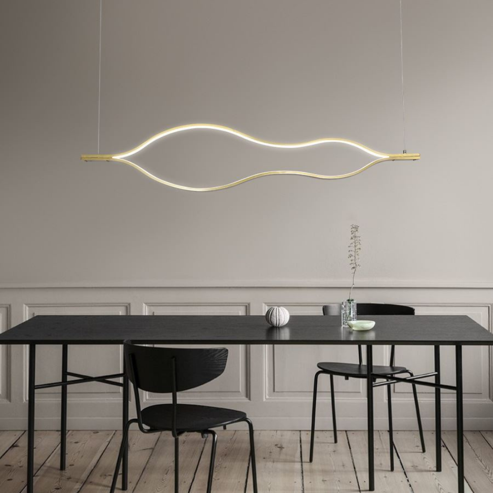 Velora Modern Linear Pendant Light - Gold Metal Hanging Fixture for Living Room