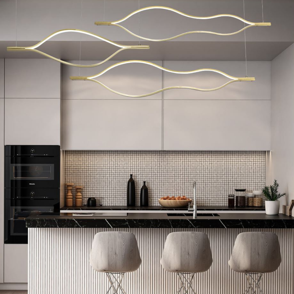 The curved light features a linear glow, offering stylish and bright illumination that suits kitchens and living areas.
