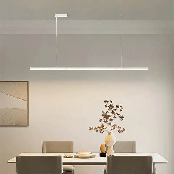 Featuring a slim metal frame with acrylic, this minimalist fixture produces soft, even lighting, which can help enhance modern kitchen and dining spaces with its clean aesthetic.