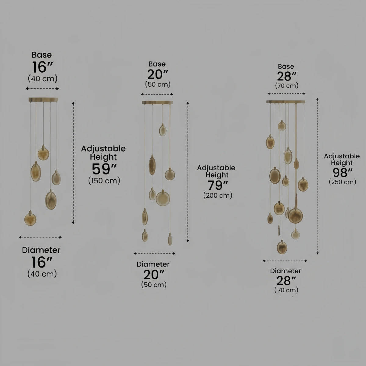 - Features a vertical composition of precision-cut marble spheres in varying diameters, creating a natural, cascading visual rhythm