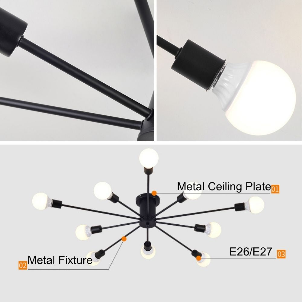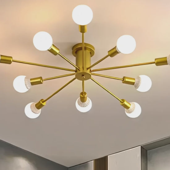 Enhance your modern interior with this radial LED ceiling light, featuring a starburst-inspired silhouette that combines minimalist design with functional elegance. Crafted from durable metal and available in gold or black finishes, this fixture complements bedrooms, living rooms, and dining areas with its clean geometric form and striking presence. Integrated bubble-style LED bulbs provide energy-efficient illumination while adding a playful, refined touch to the ceiling. Blending sculptural design with practical lighting, it serves as a stylish accent for modern and contemporary interiors.