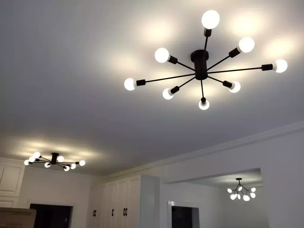 - Radial design featuring multiple spherical LED bulbs, available in 6, 8, or 10 bulb configurations for adjustable brightness