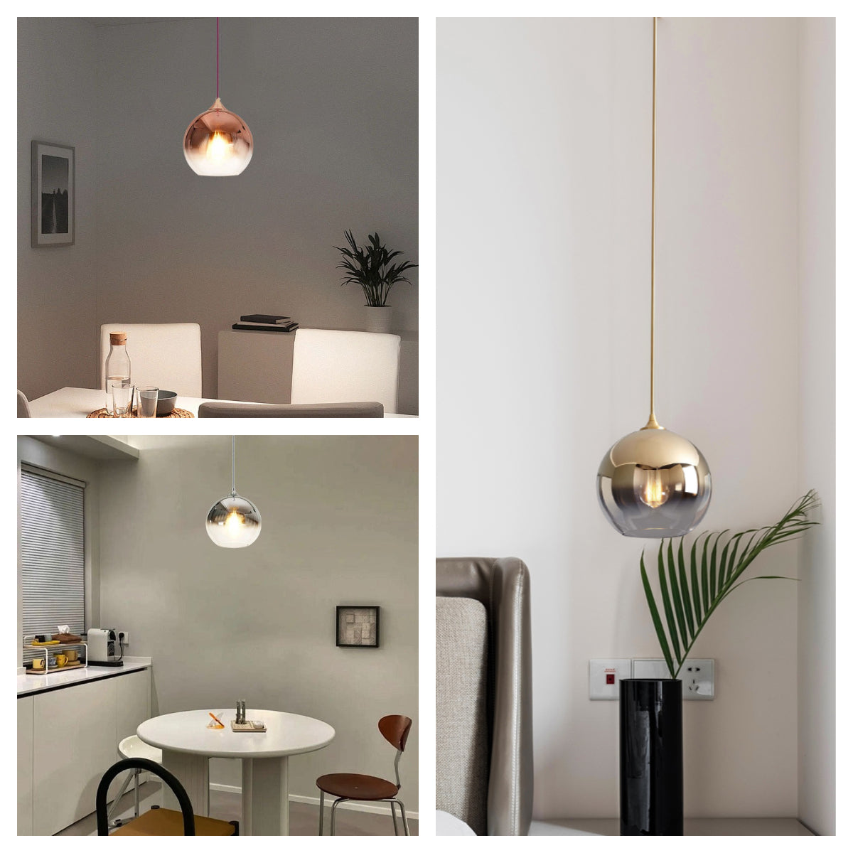 Excelis Modern Glass Globe Pendant Light – Gold/Silver LED Lamp for Dining Room