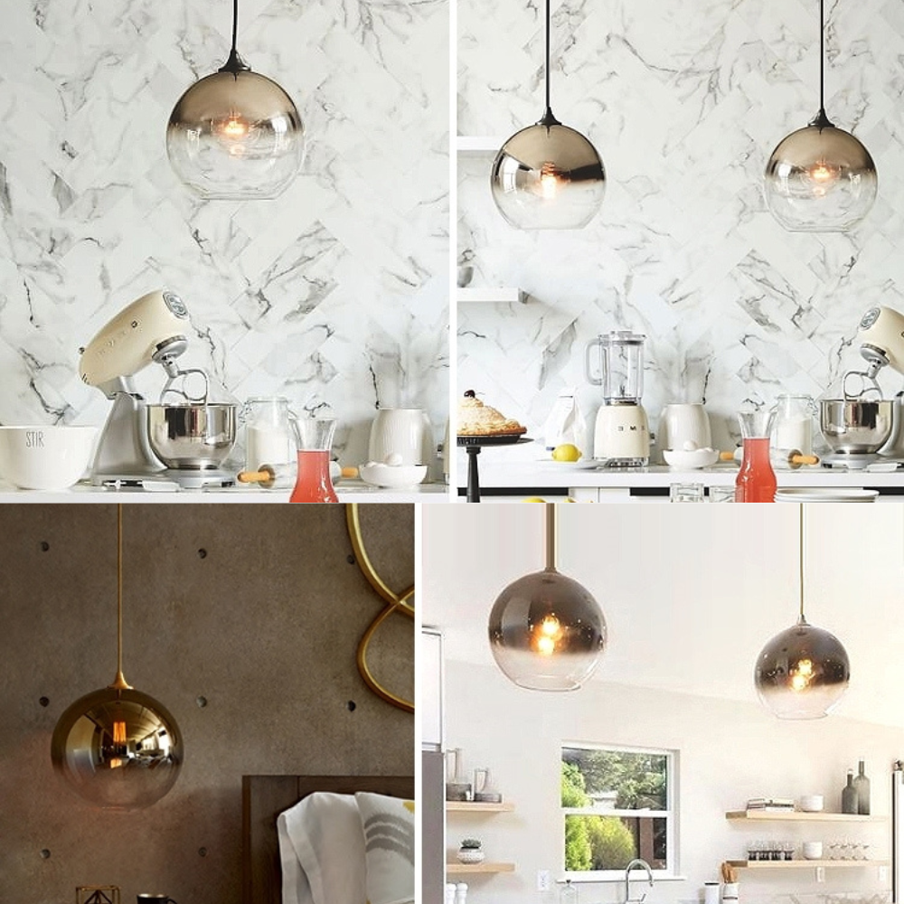 - Features D15/20/25/30/35/40cm (5.9"/7.9"/9.8"/11.8"/13.8"/15.7") globe-shaped glass shade with metallic finish