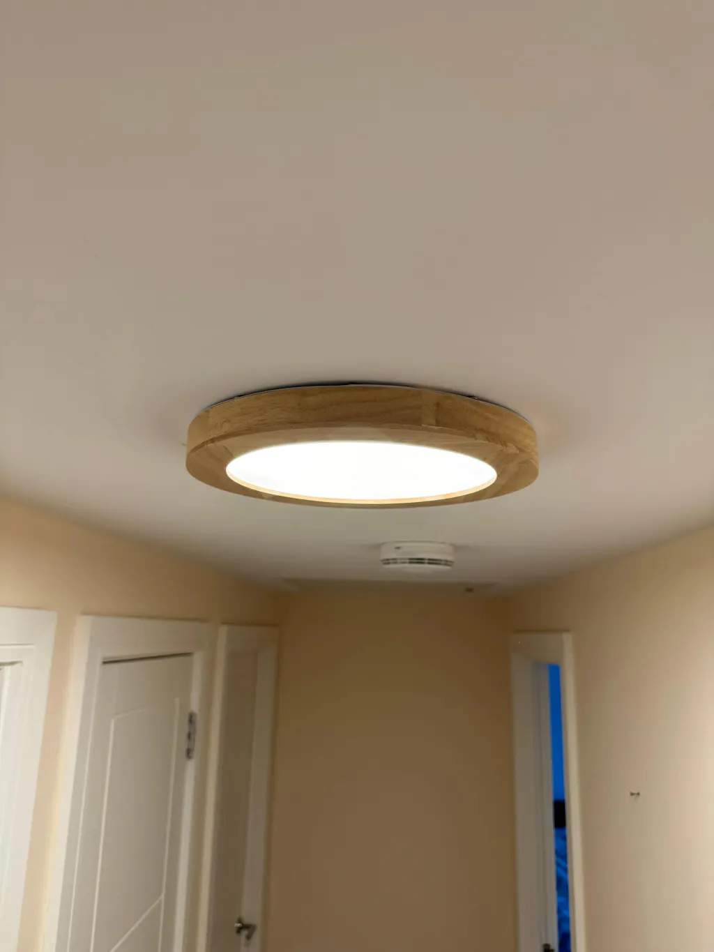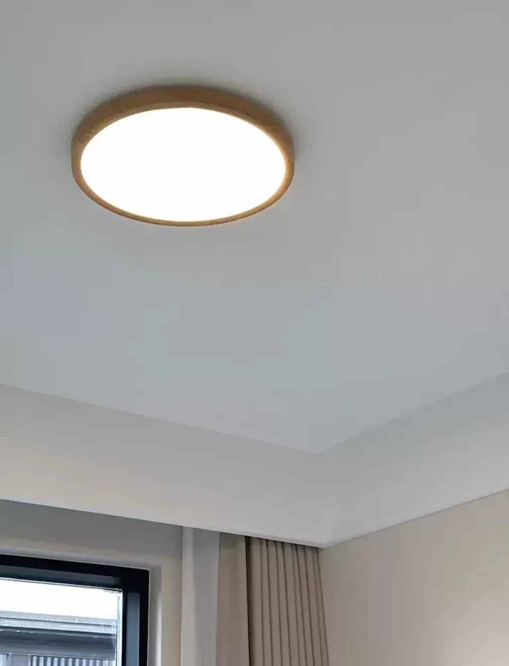 Zenno Modern Round Dimmable Ceiling Light – Wood/Acrylic for Living Room