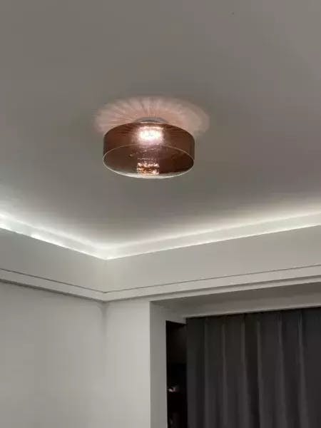 Bring modern style and smart functionality to your home with this sleek ceiling light. Its round shape, warm brown glass shade, and metal frame create a clean, timeless look that blends easily into various spaces. Featuring three-color change controlled by a wall switch, it allows you to adjust from brighter to cozier lighting with ease. Well-suited for living rooms, bedrooms, or dining areas, it offers a stylish and minimal way to illuminate your space.