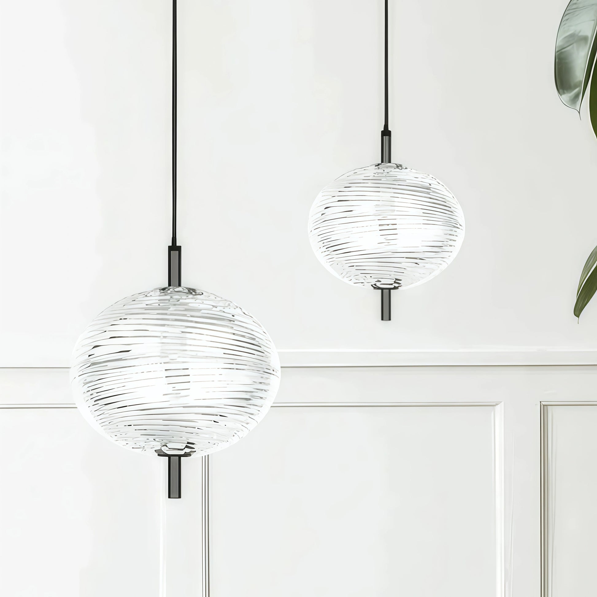 These pendant lights are available in sleek oval and soft globe shapes, featuring subtle ribbed textures that diffuse light gently. Crafted from metal and handcrafted glass, they combine clean geometry with soft illumination. Suitable for living rooms, dining areas, or bedrooms, they provide both functional lighting and decorative interest for contemporary interiors.