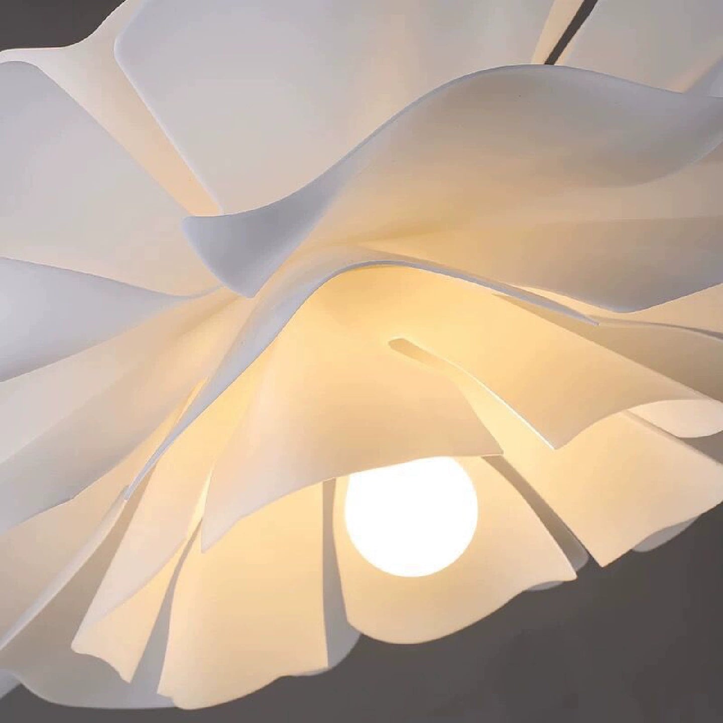 This pendant light features a layered design inspired by the soft shapes of blooming flowers, providing warm, even illumination suitable for dining or living areas. Made from durable metal and delicate acrylic with a clean white finish, it combines strength with refined design. Functional and decorative, it adds visual interest to contemporary interiors.
