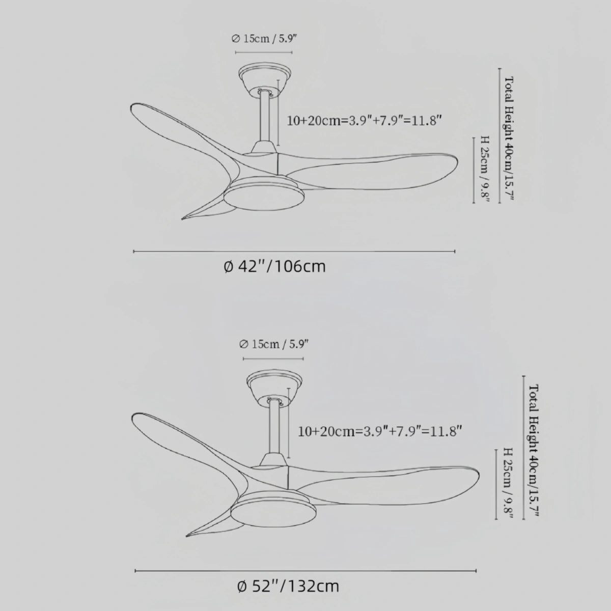 - Dia 106cm x H 25cm (∅ 42″ x 9.8″) | Single blade length: 51cm (20″)