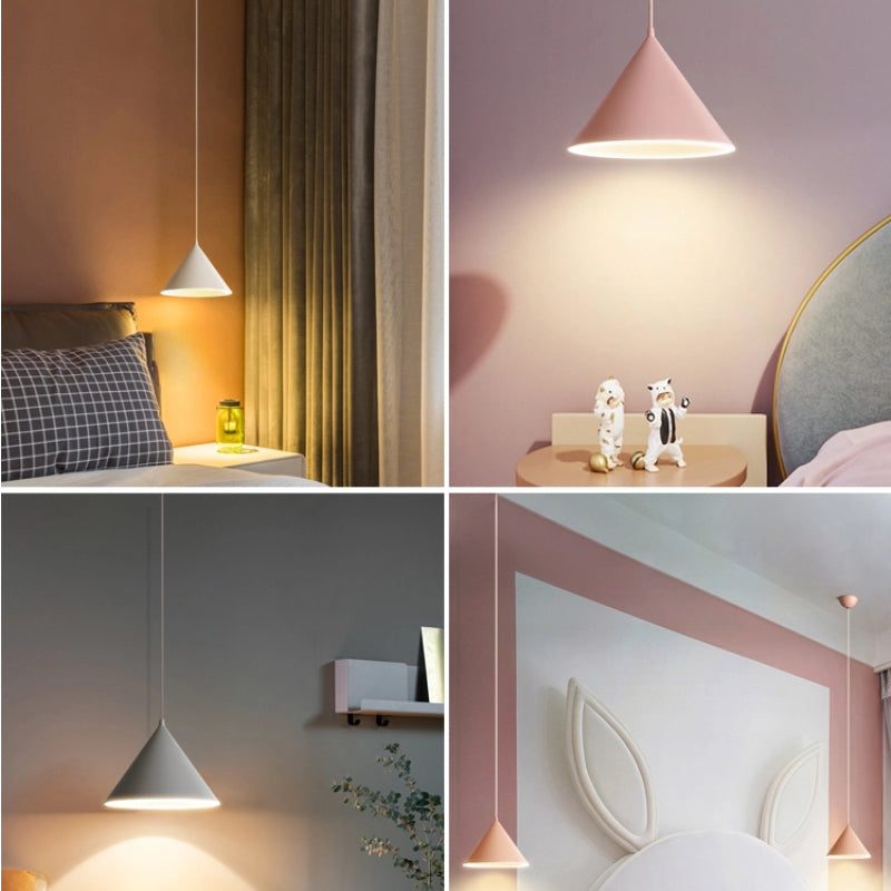 Upgrade your space with this modern conical LED pendant light, designed for minimalist interiors that balance style and function. Featuring a sleek cone-shaped silhouette, this fixture is crafted from durable metal and acrylic, offering sturdy construction with soft, diffused illumination. Suitable for dining rooms, living rooms, and bedrooms, it provides three adjustable color temperatures—warm white, neutral white, and cool white—easily controlled via wall switch. Whether used as a dimmable task light or a decorative focal point, this adjustable pendant lamp complements modern settings with its refined elegance.