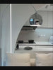 The simple arc design features smooth lines and a sleek hemispherical lampshade, creating a subtle Nordic-inspired aesthetic.