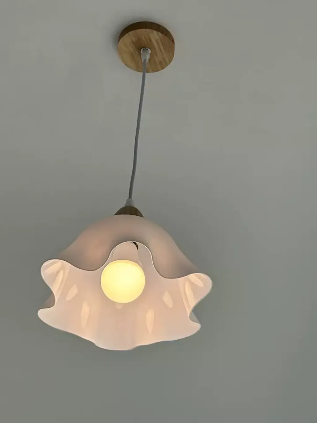 Crema Nordic Flower LED Pendant Light – White Wood/Acrylic for Dining Room