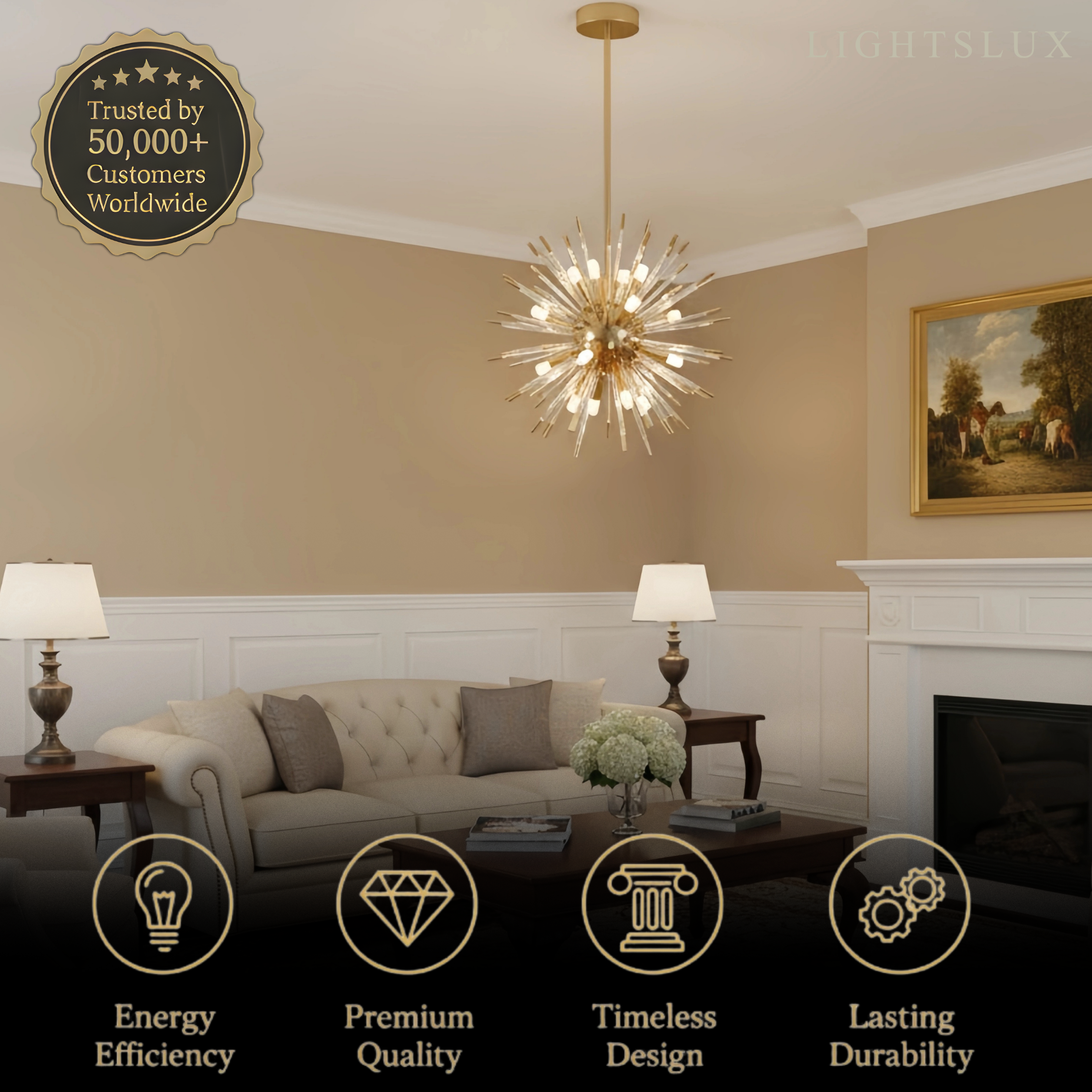 - Equipped with multiple E14 LED bulbs for bright, energy-efficient illumination that highlights the crystal's sparkle and ensures ambient warmth