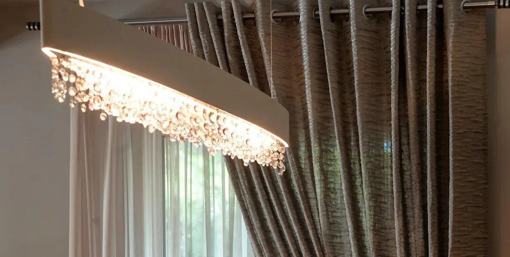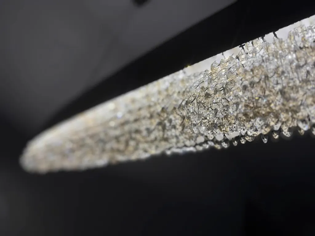 Clear crystal strands combined with a metal frame produce gentle light refraction, adding a refined and elegant touch.