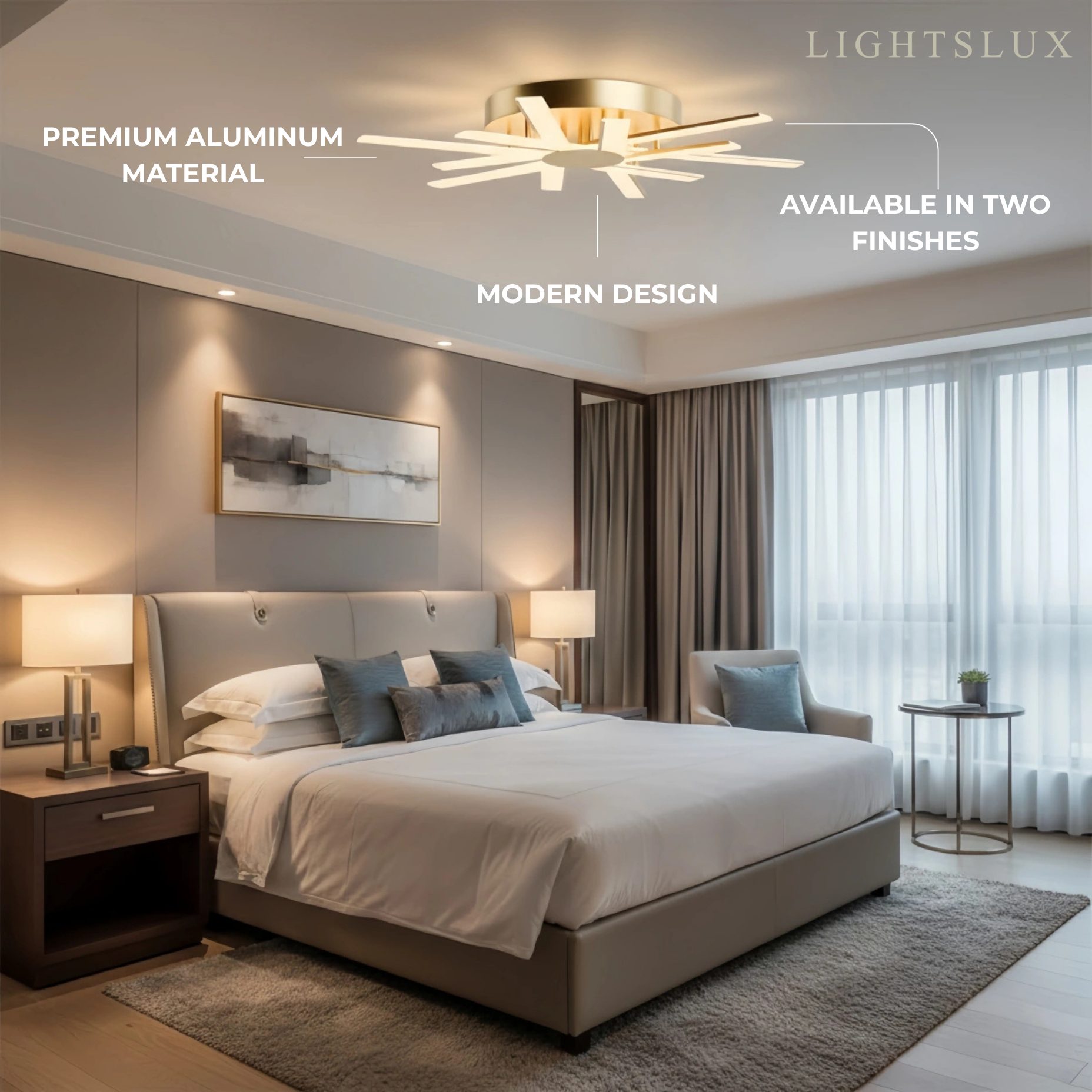 Light up your living space with this light, a customizable modern ceiling light that combines simple elegance with contemporary style. This flush-mount fixture features radiating acrylic rods arranged in a star-like formation, creating a soft, diffused glow that adds texture and sophistication to any interior. Perfect for dining rooms, hallways, or entryways, this light brings a charming yet structured light pattern that elevates modern decor with ease.