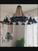 Wheel-shaped frame with multiple lights creates a bold, attention-grabbing centerpiece for any space.